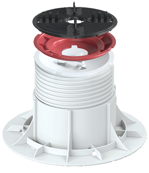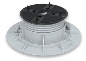 Low-height pedestal with a self-levelling head for tight voids and minimal thresholds. Perfect for paving installations with limited space.